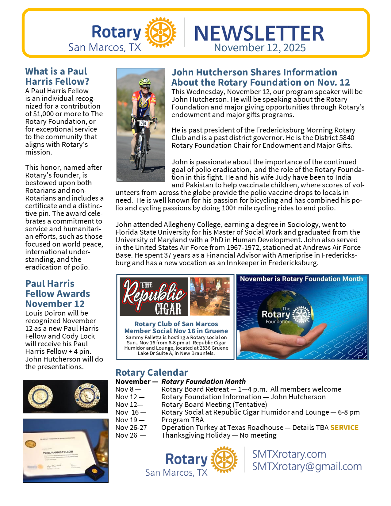 We canโt wait to see you in New Braunfels for an unforgettable weekend of Rotary fellowship, enrichment, and fun!