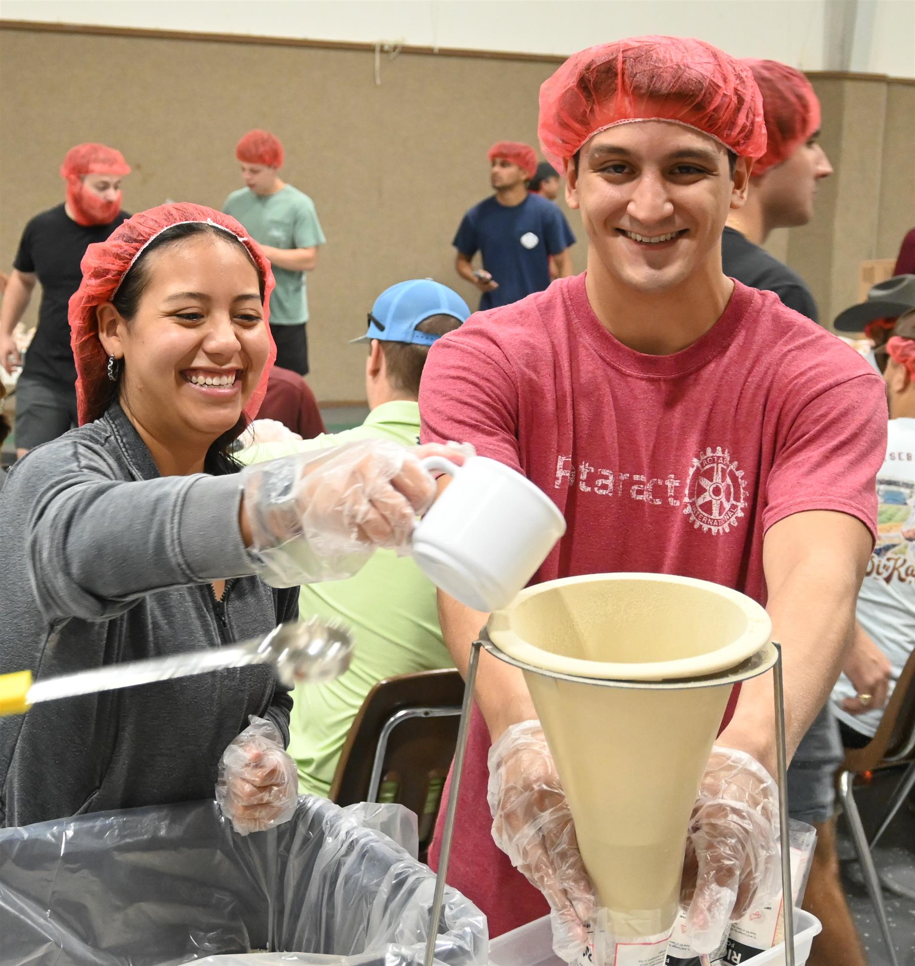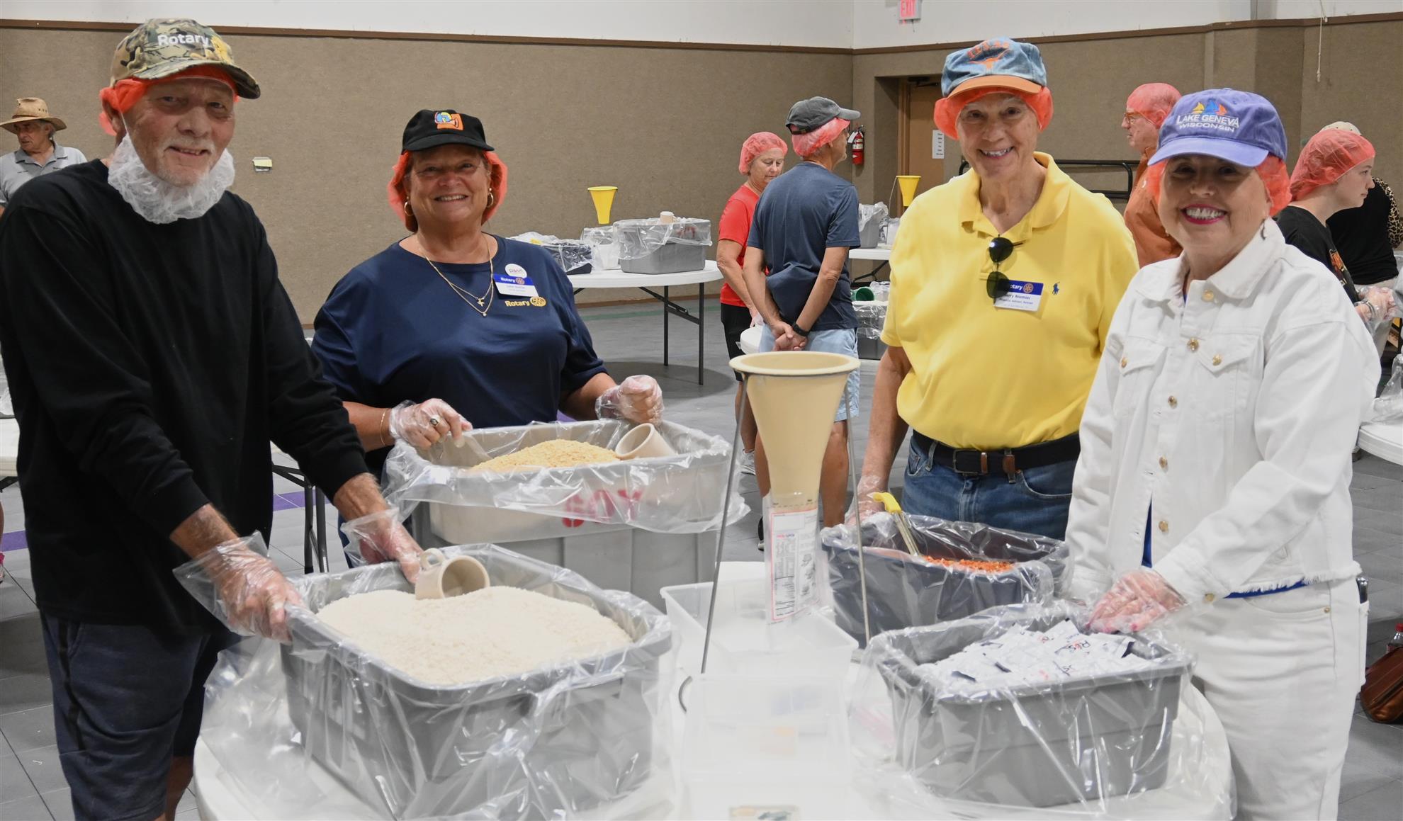 It is a partnership between Rotary and the international nonprofit Rise Against Hunger (RAH). This is Rotary’s fifth year sponsoring Rise Against Hunger. In prior years meals were delivered to famine-stricken Africa, Haiti, and Central America. Rotary is also collecting nonperishable food and cash donations for the Hays County Food Bank and School Fuel.
