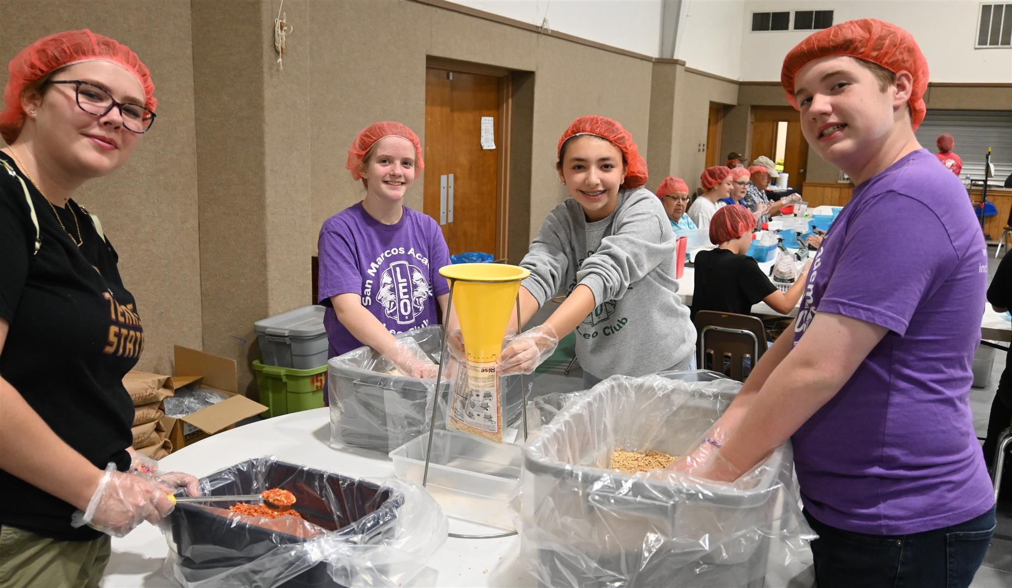 The Rotary Club of San Marcos needs 130 volunteers to help pack almost 15,000 food packages, each of which serves six people, for a total of 90,000 meals. The event is scheduled for Saturday, October 18 from 9 a.m. to noon during Global Food Week. First Lutheran Church on Holland Street in San Marcos hosts the event in their gymnasium.