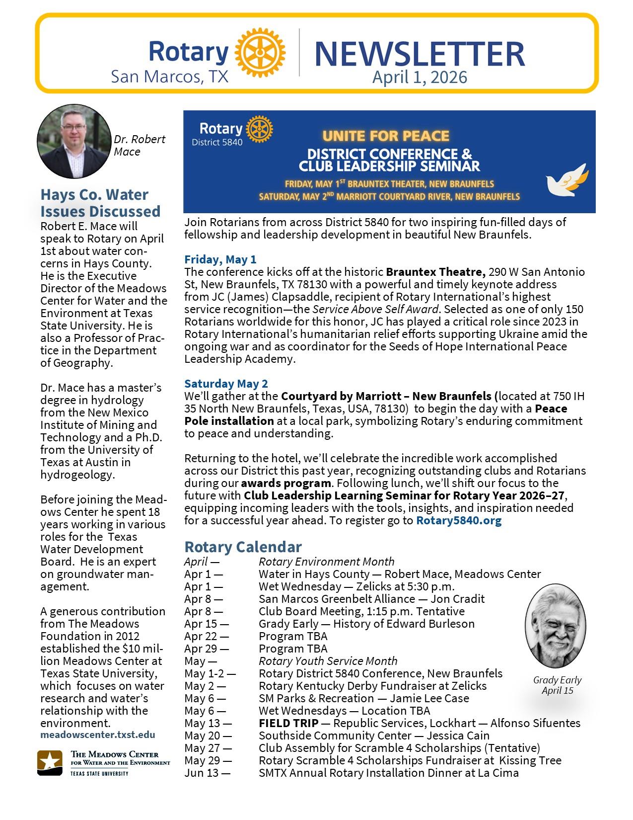 April 28 SMTX Rotary NewsletterApril 28 SMTX Rotary Newsletter #Rotary #Rotary5840 #smtx #sanmarcostexas #RotaCare #SanMarcosAcademy #SMA