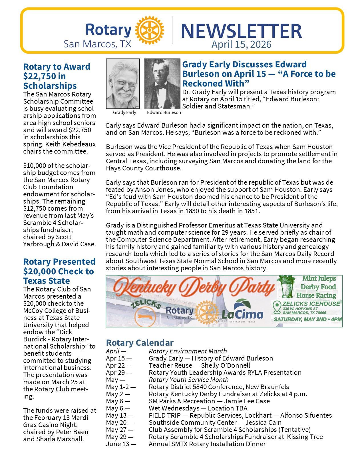 April 8 SMTX Rotary Newsletter