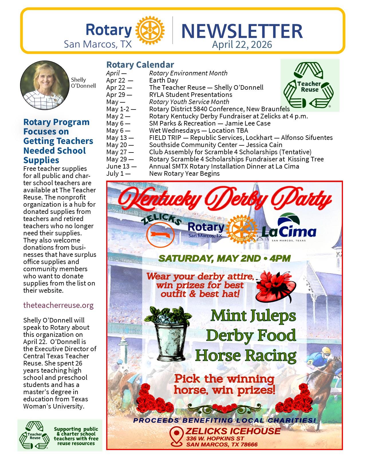 April 22 SMTX Rotary Newsletter