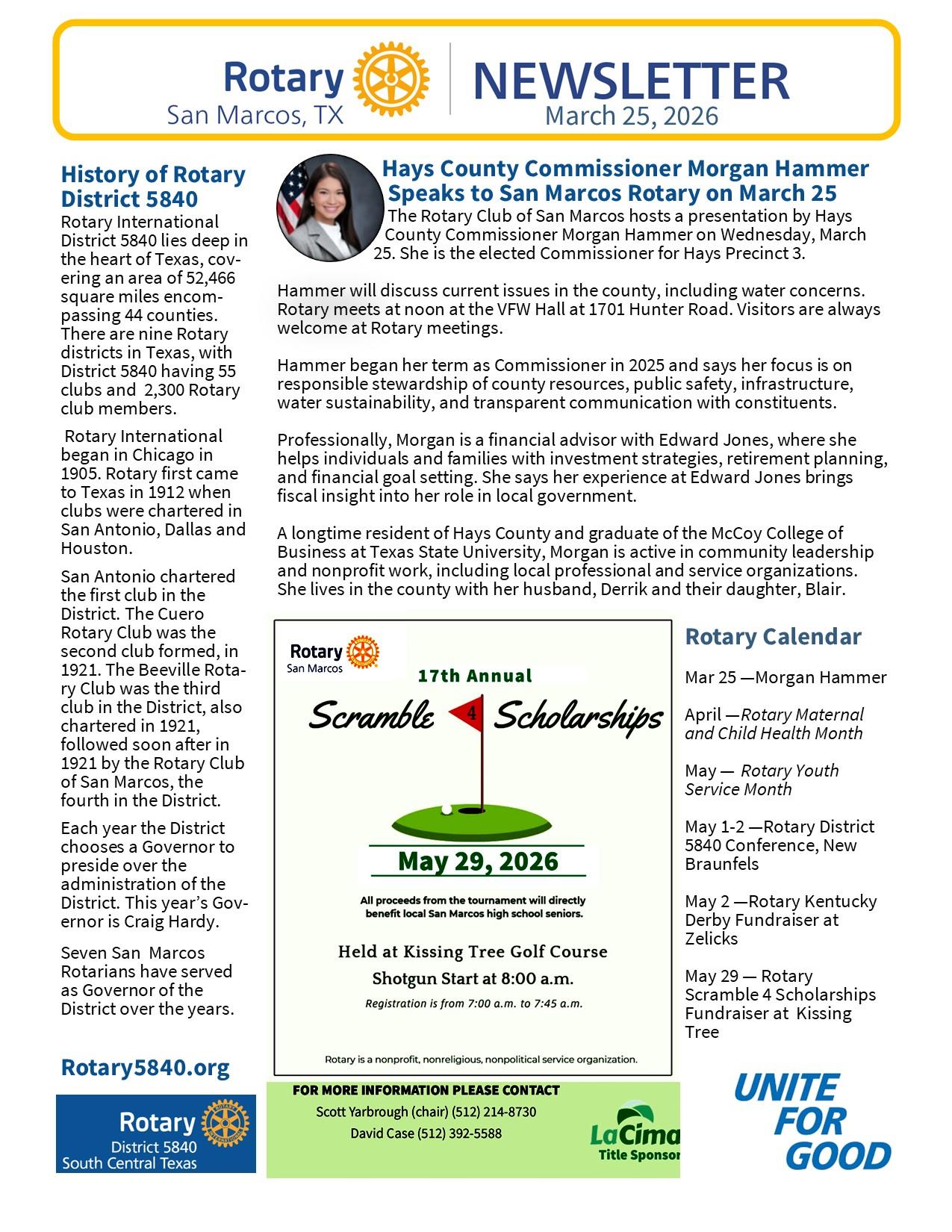 March 25 SMTX Rotary Newsletter