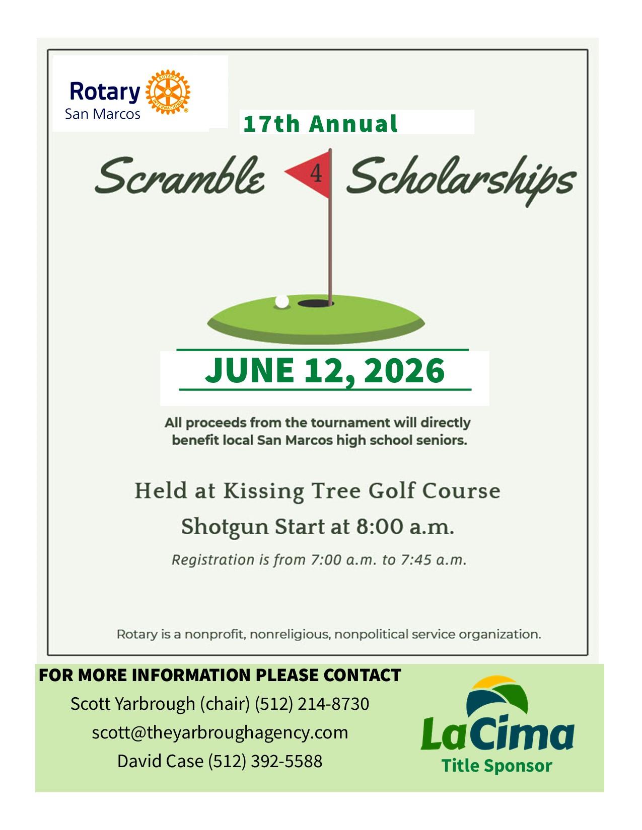 SCRAMBLE 4 SCHOLARSHIPS NEWS RELEASE#golf #rotary #scramble4scholarships #smtx #sanmarcos #district5840