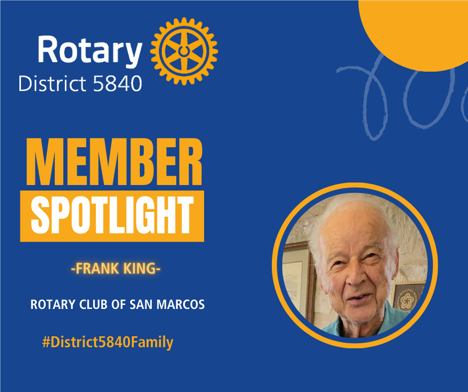 Frank King steps into the leadership role of San Marcos Rotary on July 1, 2026. Here is some background information about Frank.